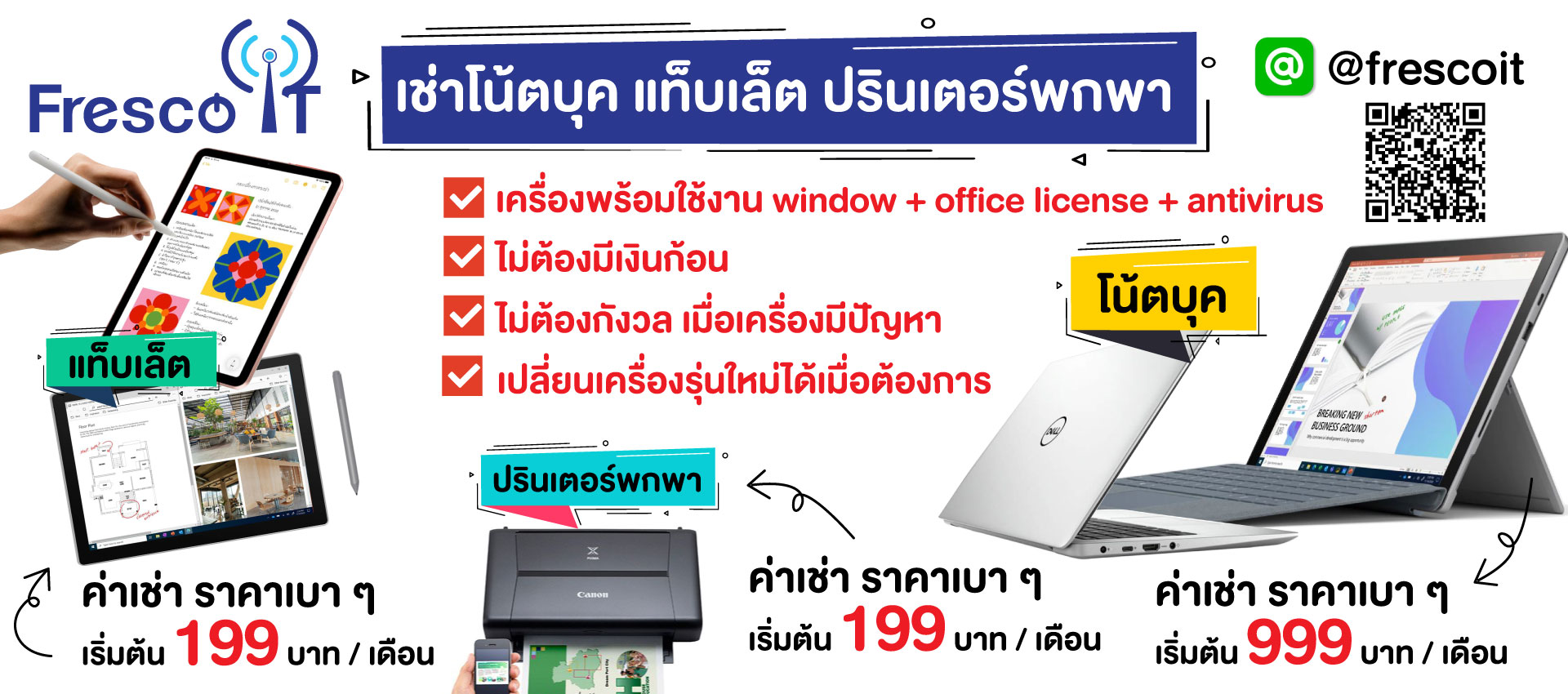เครื่องใหม่แกะกล่อง เรายินดีให้บริการทั้งลูกค้าบุคคล และ ลูกค้าองค์กร ราคาเริ่มต้น เพียง 999 บาทต่อเดือน
